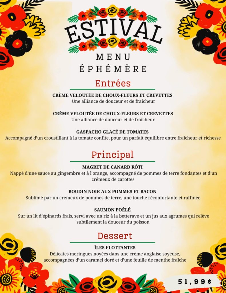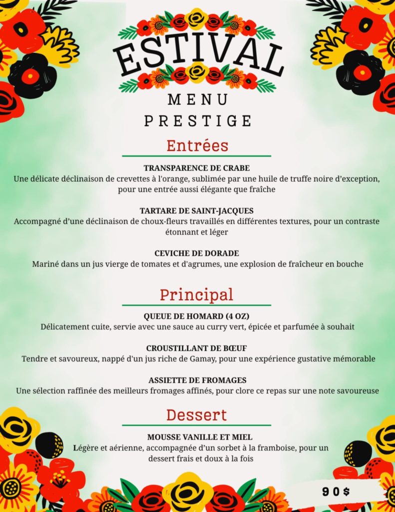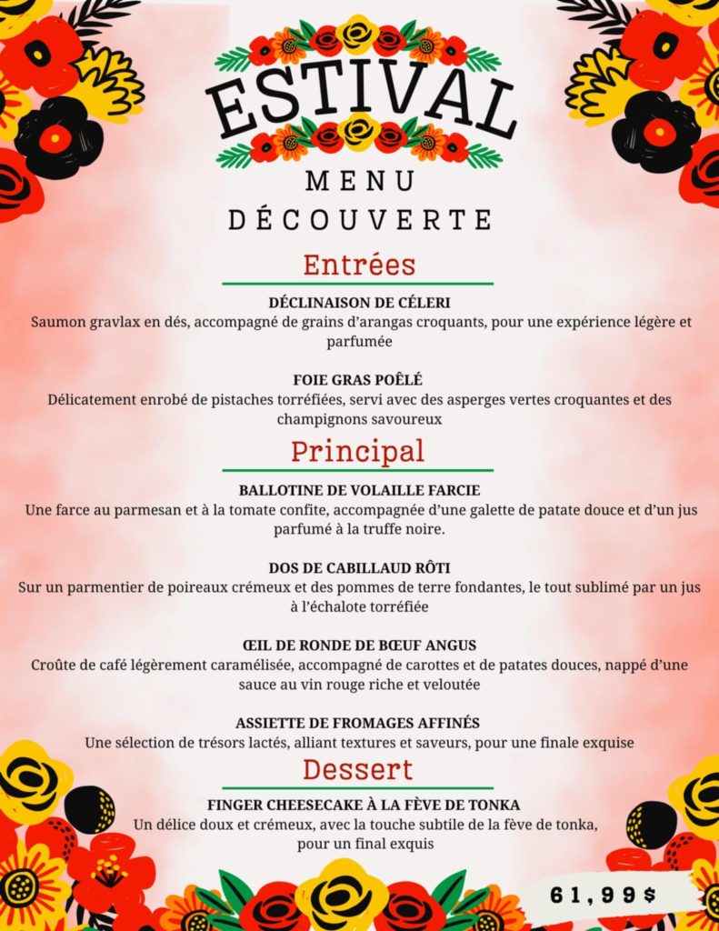 Menu table d’hôte disponible dès le 19 Septembre 2024